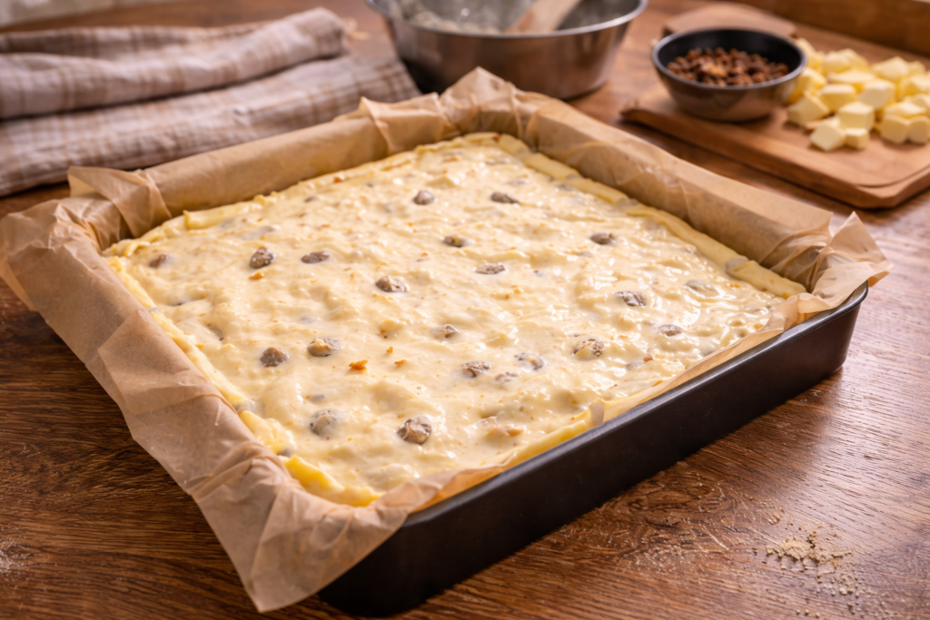 W klasycznej wersji tak – rodzynki są tradycyjnym dodatkiem. Jeśli jednak ich nie lubisz, możesz je pominąć bez wpływu na konsystencję ciasta.